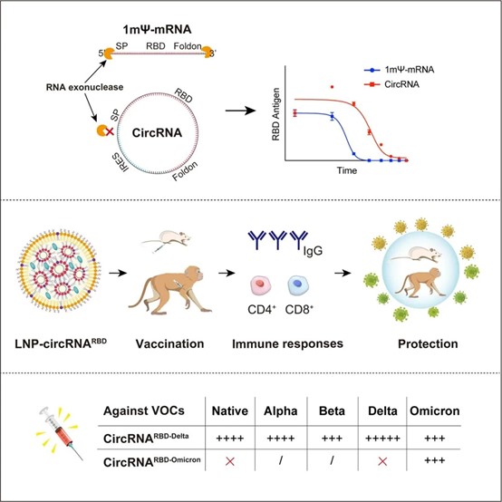 以上結果表明,針對新冠病毒德?tīng)査儺愔暝O計的circRNARBD-Delta疫苗是具有廣譜保護力的新冠肺炎候選疫苗,該研究也為針對當前新冠變異株迅速傳播的疫苗研發(fā)和接種策略提供了參考依據。同時(shí),該項平臺型技術(shù)的建立在感染性疾病、自身免疫病、罕見(jiàn)病以及癌癥的預防或治療中具有廣泛的應用前景。